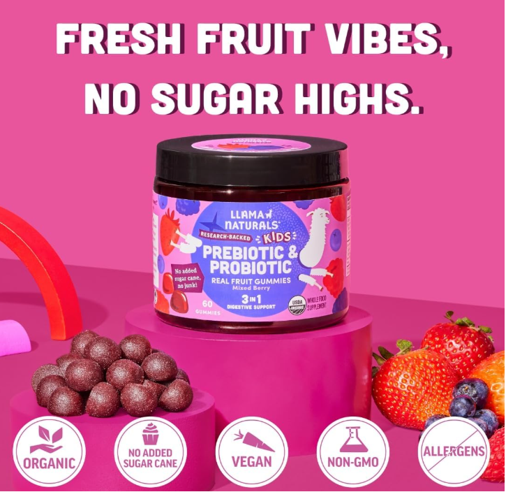 Our probiotics are made of real organic fruit with no added sugar cane, syrups, sweeteners, synthetic vitamins, gelatin, artificial ingredients and colorings. This kids probiotic is also plant based, vegan, and contains no peanuts, tree-nuts, corn, gluten, soy, dairy, eggs, or shellfish.